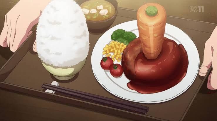 普通のにんじんハンバーグはちょっと付け合わせが添えてある普通のハンバーグににんじんがブッ刺さってるだけだからスレ画はだいぶ盛ってる